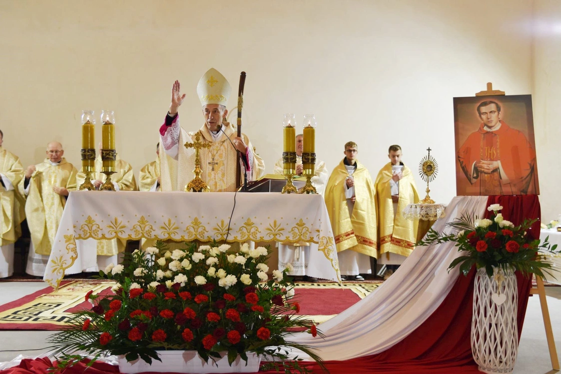 Już w kościele, w homilii w czasie Mszy św. bp Salaterski przywołał patrona świątyni bł. ks. Jerzego Popiełuszkę, a zwłaszcza jego motto życiowe, by zło dobrem zwyciężać. Biskup wskazywał, że jest to również zadanie dla chojniczan, którym pogratulował również odwagi i determinacji w budowie nowego kościoła.