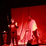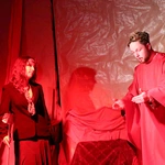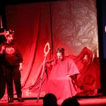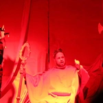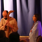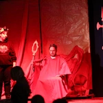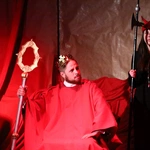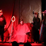 Ciężkowice. Jasełka "Apka do Betlejem". Scena w domu Heroda (w tej roli ks. Mikołaj Migas).Scenariusz był pisany życiem (i wspólnymi siłami). Przygotowania trwały wiele tygodni, ale to nie był zwykły proces twórczy. Tekst „Apki do Betlejem” rodził się w dialogu, zderzając tradycję z codziennością współczesnej młodzieży. Inspiracja przyszła z najmniej oczekiwanego kierunku. – Pomysł, by osadzić historię we współczesnych realiach, podpowiedziała moja mama. Zaproponowała motyw wejścia w inną rzeczywistość przez aplikację i powrót do tego, co fundamentalne – wspomina Martyna Hołda.