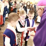 Hierarcha odwołał się również do konkretnych sytuacji z życia dziecka. – Zachorujemy, nie chciałbym żebyście chorowały, ale jak ktoś zachoruje, to ofiaruje Panu Jezusowi lekarstwa bardzo przykre czy zastrzyki, cierpienia. I to wszystko narysuje właśnie na cierniowej koronie, by dołożyć kwiatek naszych cierpień dla Pana Jezusa. Wreszcie ktoś nam dokuczy, podamy mu rękę, mówimy: „przebaczam ci”. I za to, że przebaczysz koleżance, kolejny kwiatek rysujesz – kontynuował biskup. Uczestnictwo w żywym Różańcu to nie tylko paciorki, to styl życia oparty na miłości i ofierze, który zaczyna się w domu, w szkole i na podwórku.