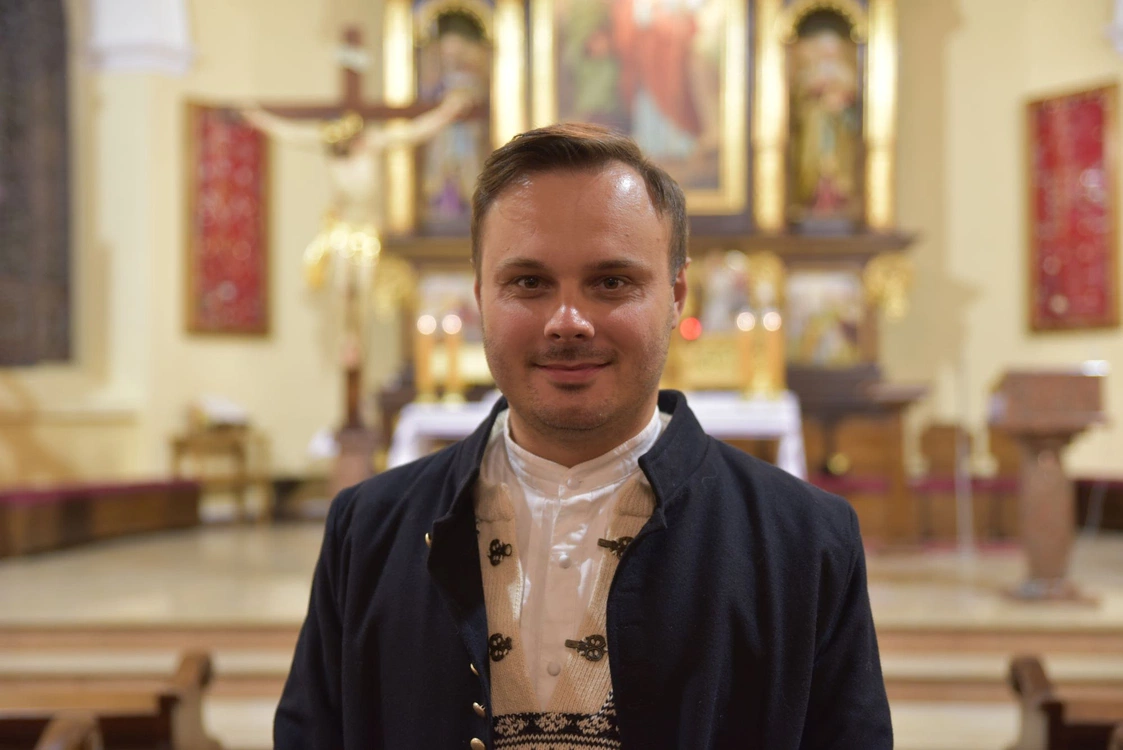 - Generalnie w Małopolsce był bardzo żywy kalwaryjski sposób śpiewania pieśni pasyjnych, który polegał na tym, że śpiew prowadził przewodnik, a ludzie za nim powtarzali kolejne frazy. Dzięki temu rodziła się żywa, modlitewna wspólnota. Kalwaryjski z ducha śpiew wzbogacano o elementy związane z konkretnym regionem i w naszym, lachowskim słychać to przede wszystkim w śpiewaniu na dwa i czasem na trzy głosy, co też wybrzmiało w czasie obecnego czuwania. Było też słychać charakterystyczny dla nas zaśpiew. Niektórzy wykonywali pieśni białym głosem - mówi Patryk Rutkowski, choreograf i kierownik zespołów Mystkowianie i Mali Mystkowianie.