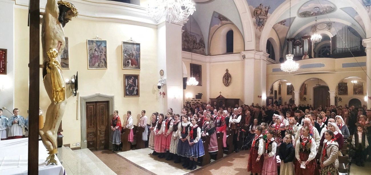 Kościół w Mystkowie wypełnił się śpiewakami w barwnych strojach lachowskich. Połączył ich różaniec przeplatany wielkopostnymi pieśniami.