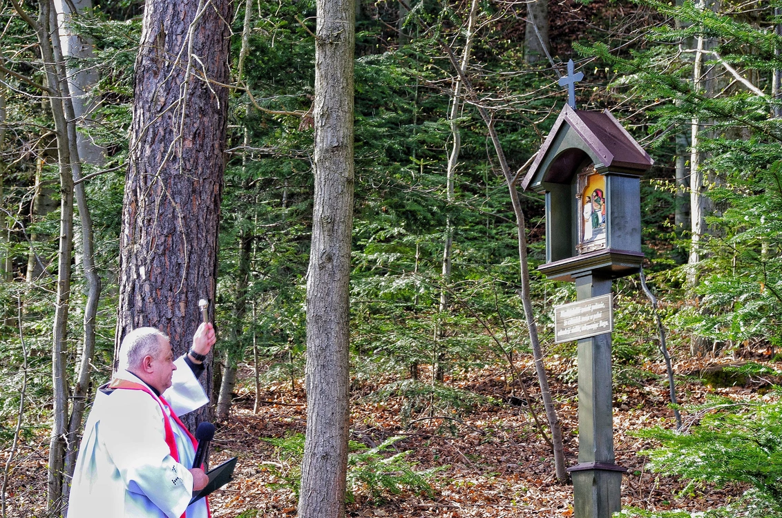W niedzielne popołudnie 12 kwietnia, w godzinie Miłosierdzia Bożego, mieszkańcy parafii św. Franciszka z Asyżu w Cieniawie zgromadzili się licznie, by wspólnie przeżyć poświęcenie nowych wizerunków stacji Drogi Krzyżowej prowadzącej na Wierchowinę.
