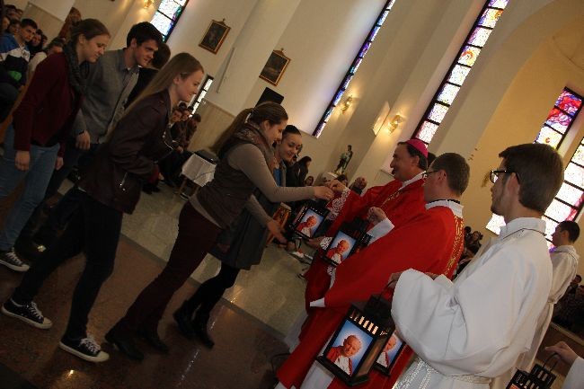 Młodzi ze wszystkich dekanatów diecezji tarnowskiej odebrali od bp. Andrzeja Jeża "Iskrę miłosierdzia", którą zawiozą do swoich parafii.