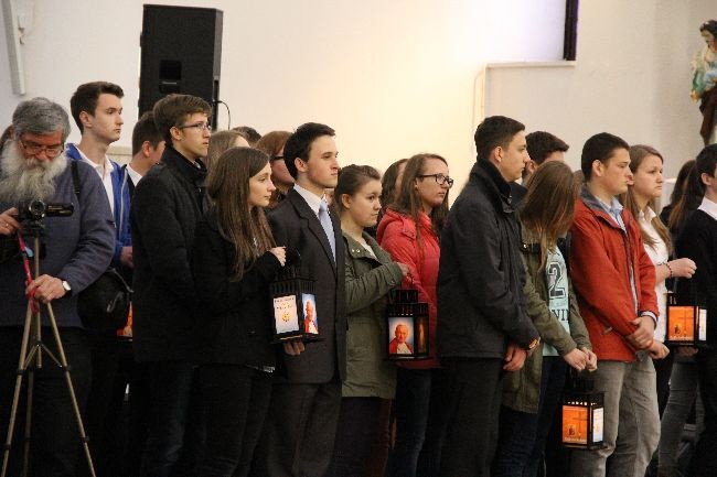 Młodzi ze wszystkich dekanatów diecezji tarnowskiej odebrali od bp. Andrzeja Jeża "Iskrę miłosierdzia", którą zawiozą do swoich parafii.