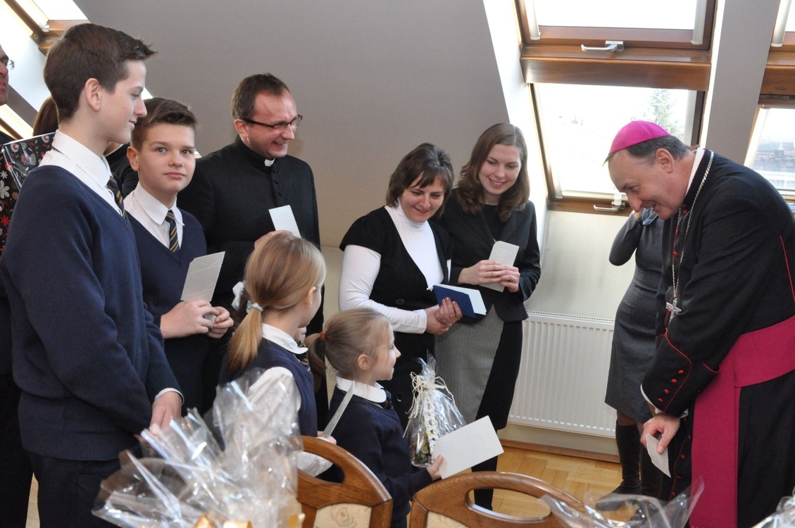 Uczniowie katolickiej szkoły im. bł. Karoliny z Tarnowa z bp. Jeżem