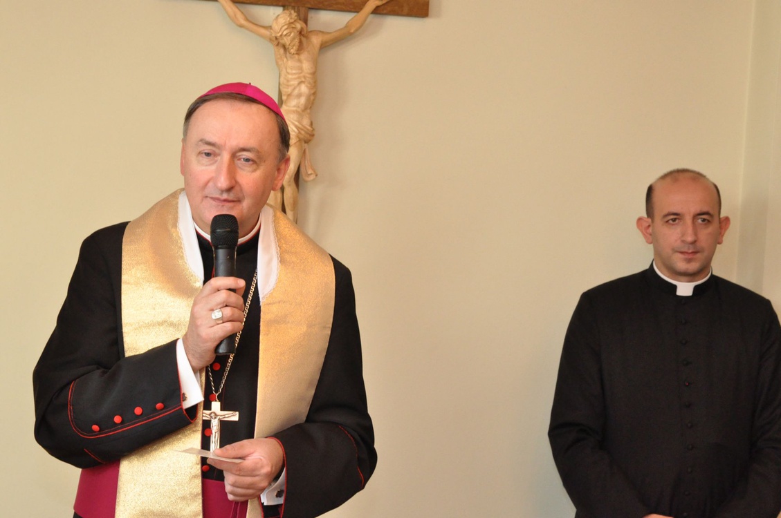 Uczniowie katolickiej szkoły im. bł. Karoliny z Tarnowa z bp. Jeżem