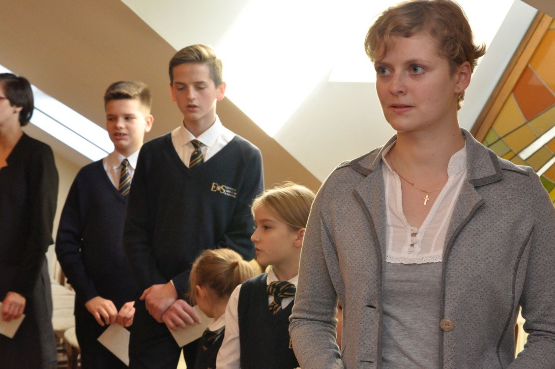 Uczniowie katolickiej szkoły im. bł. Karoliny z Tarnowa z bp. Jeżem