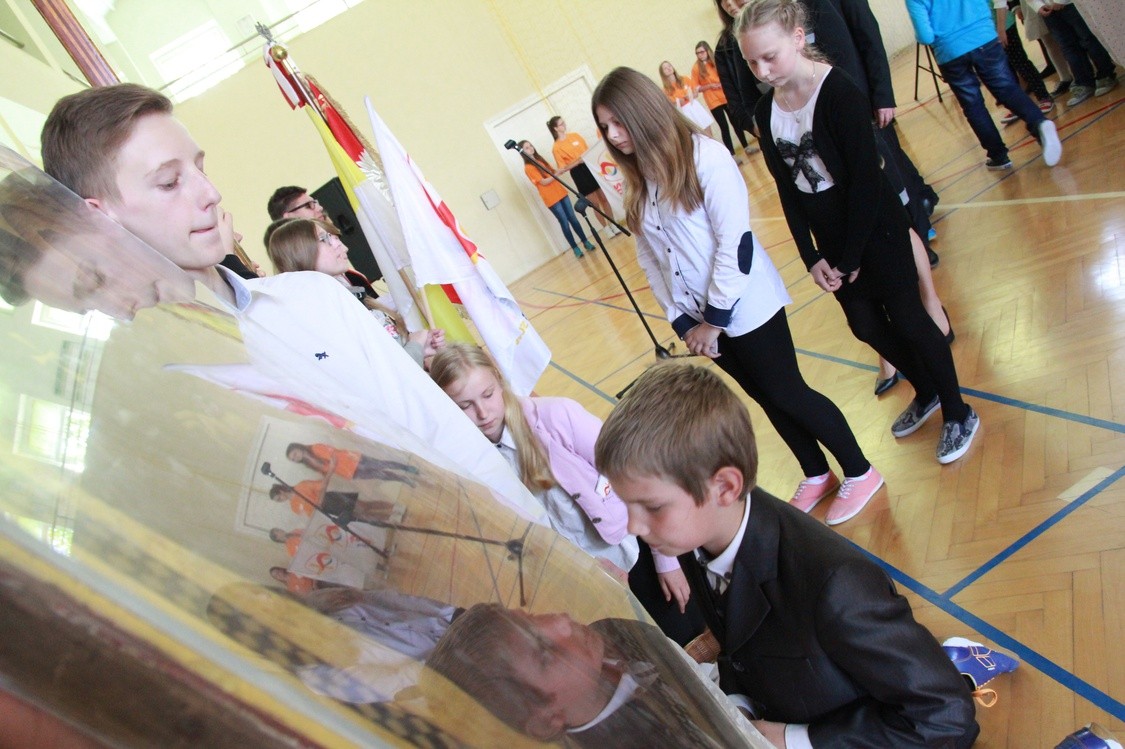 Uczniowie z Zespołu szkół w Szymbarku, dzieci i młodzież, adorowali krzyż i ikonę "Salus ​Populi Romani" w czasie ich peregrynacji po dekanacie ropskim.