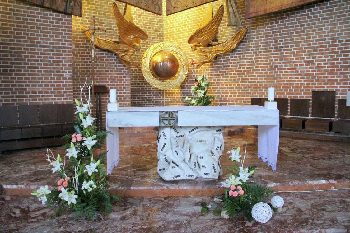 Ks. prał. Stanisław Gurgul zwraca uwagę na wystrój kościoła, któremu patronuje św. Maksymilian Maria Kolbe. Jego surowość i harmonię.