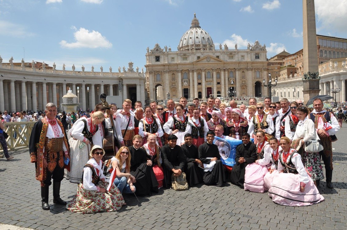 Do Rzymu na kanonizację o. Stanisława Papczyńskiego pojechał co dziesiąty podegrodzianin. Wielu z nich było w strojach regionalnych, także Zespół Pieśni i Tańca "Podegrodzie".Zdjęcia: arch. GOK w Podegrodziu