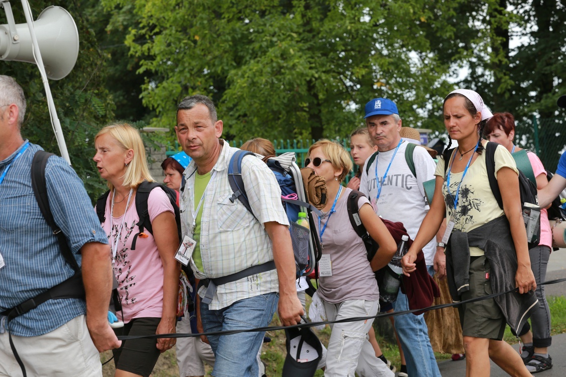 Mija piąty dzień pielgrzymki. Upał był niewielki, ale duchota owszem. Poza tym trafił się deszcz. Pielgrzymi idą i nie dają za wygraną.