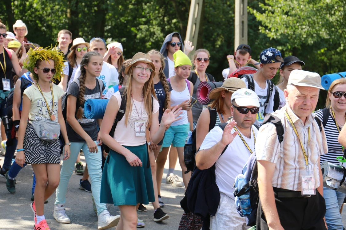 Świeżutkie ukłony, uśmiechy i grupowe prezentacje z 7. już dnia tarnowskiego pielgrzymowania.