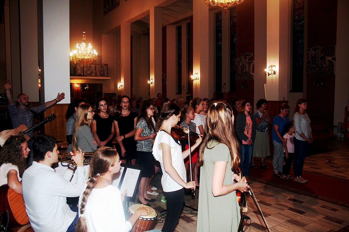 Młodzi z duszpasterstwa akademickiego Tratwa w Tarnowie animowali modlitwę uwielbienia w kościele parafialnym w Rudce.