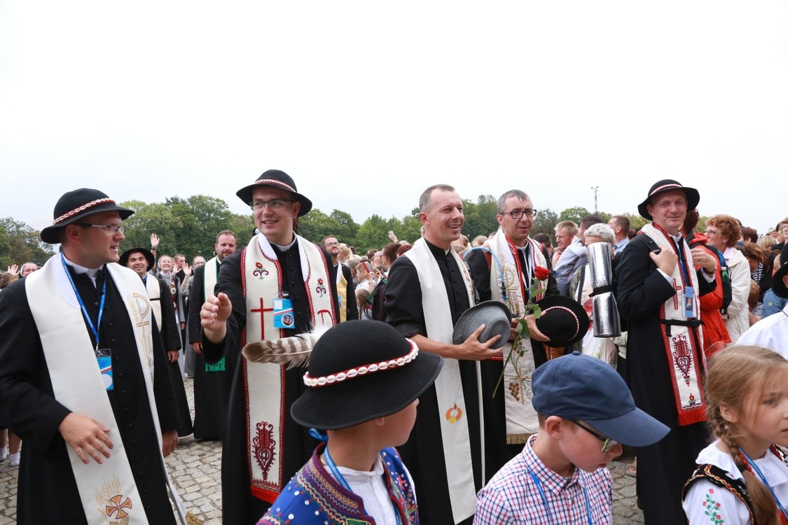 Ponad 400 osób pielgrzymowało na Jasną Górę w grupie "Św. Kingi", ale na wejściu rozrosła się jeszcze bardziej. Przewodził jej ks. Stanisław Kłyś, wspierany przez 9 kapłanów. Najmłodszym uczestnikiem tegorocznej pielgrzymki w tej grupie był 10-miesięczny Karol, a najstarszą uczestniczką - 71-letnia siostra Krystyna. Przed tron Matki Bożej pątnicy weszli w strojach regionalnych górali pienińskich, kamienieckich, łąckich i Lachów Podegrodzkich. Radosna, rozmodlona i roztańczona grupa powitała Jasnogórską Panią góralskim śpiewem z akompaniamentem skrzypiec.