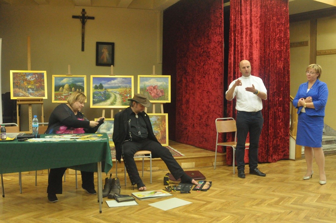 W parafii MB Niepokalanej odbyło się spotkanie ze Stanisławem Kmiecikiem, artystą malarzem malującym ustami i stopami.