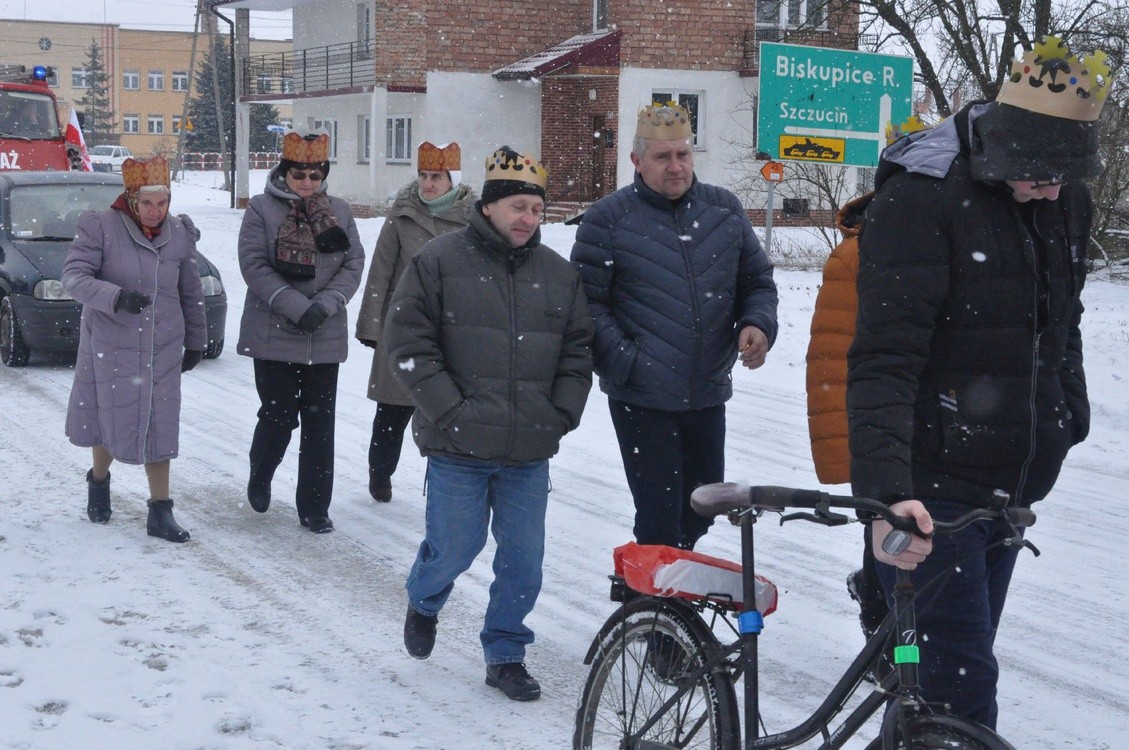 Orszak Trzech Króli wyruszył sprzed szkoły podstawowej. Hołd Jezusowi odbył się na schodach kościoła parafialnego.