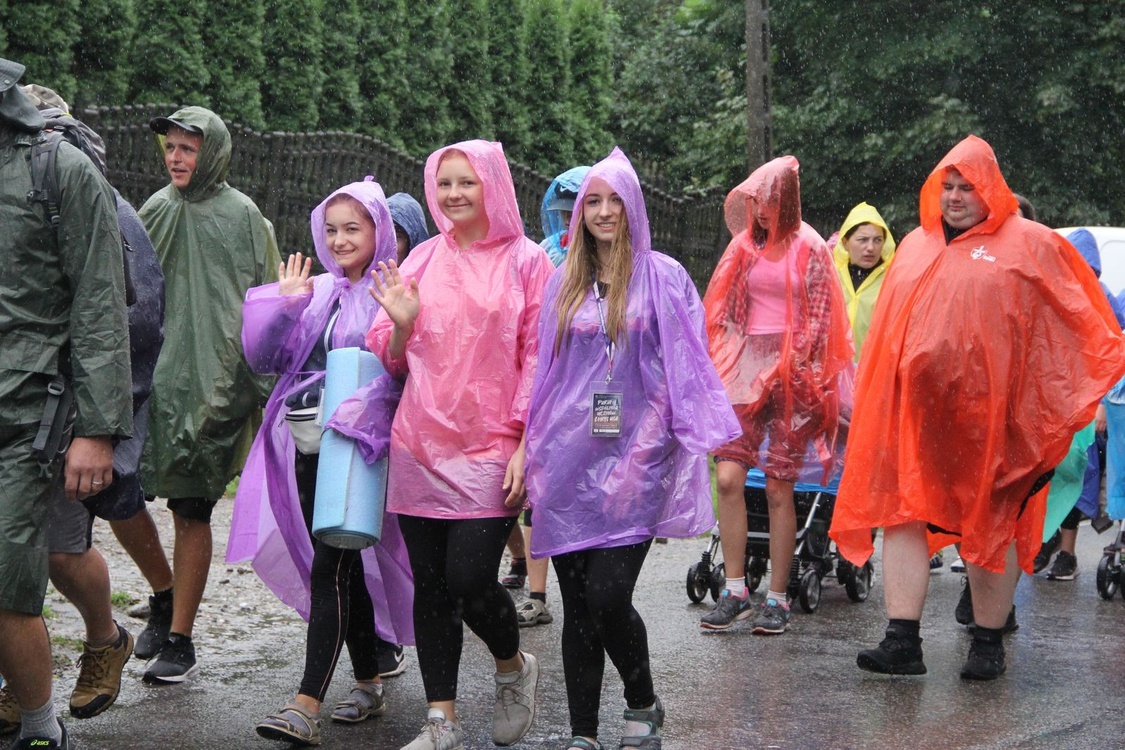 Dziś pielgrzymka stała się manifestacją polskości. Było biało-czerwono i... kolorowo, kiedy pątnicy musieli założyć peleryny.