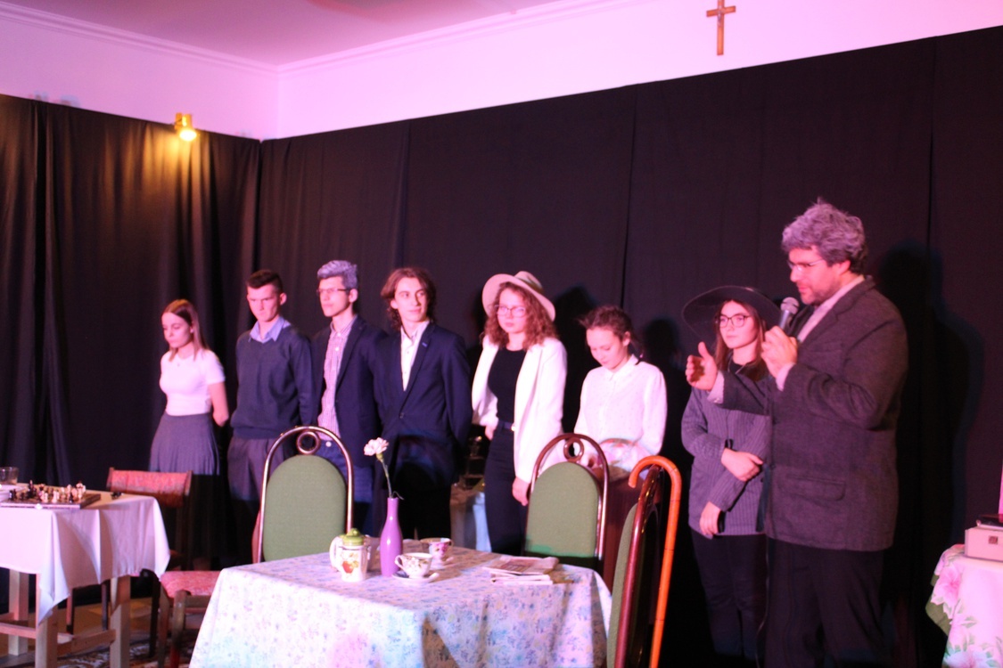 Na scenie świetlicy wiejskiej 30 listopada młodzież pod kierunkiem ks. Mariusza Ogorzelca zaprezentowała sztukę "Drewniany talerz".