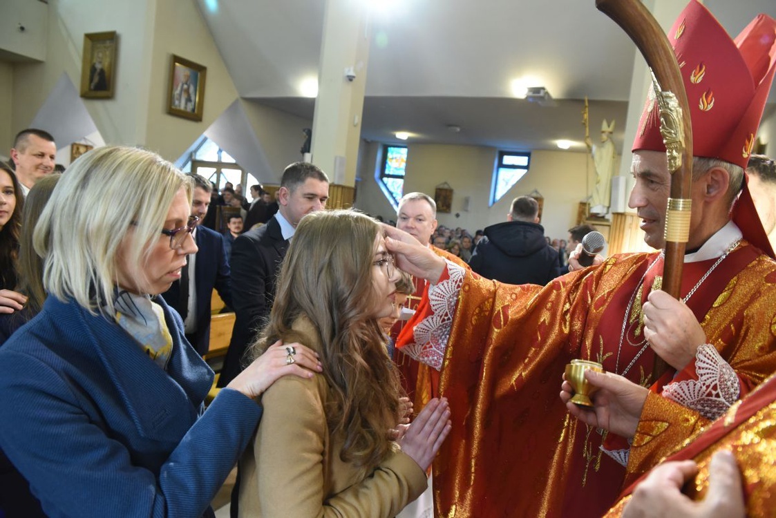 Sakrament bierzmowania przyjęli z rąk bp. Stanisława Salaterskiego młodzi z czterech ósmych klas miejscowej szkoły podstawowej.