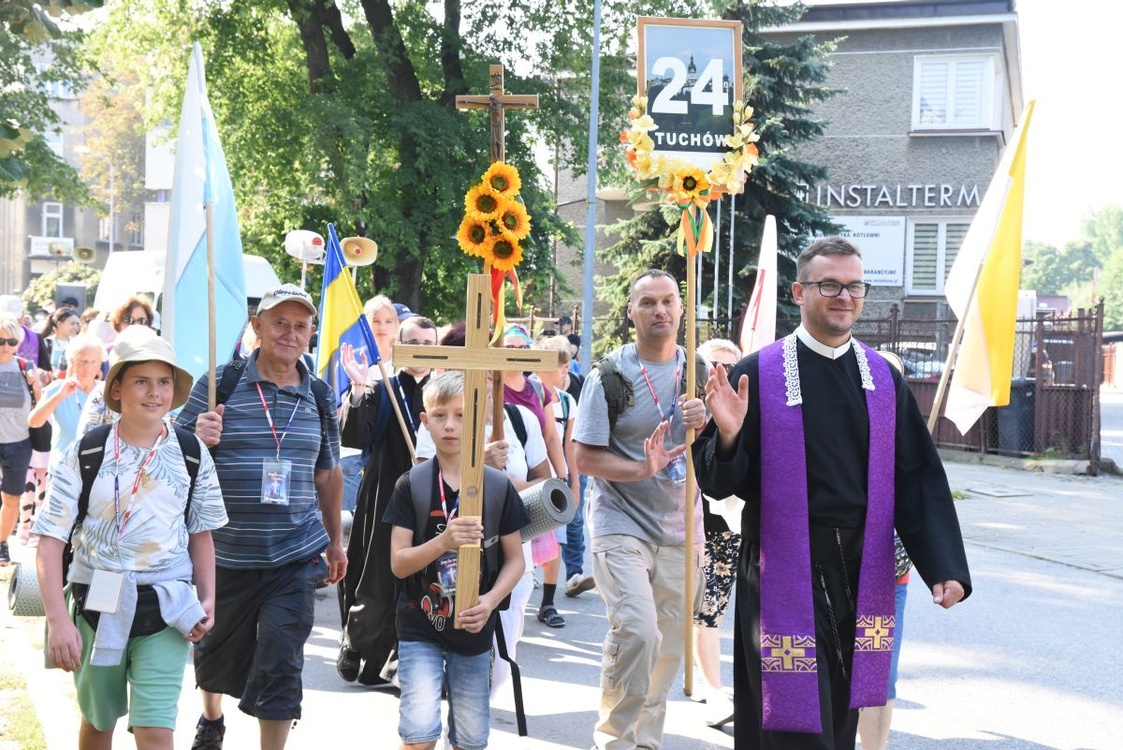 Grupy pielgrzymkowe opuściły Tarnów i są już na szlaku. Pierwszego dnia towarzyszy im wspomnienie chrztu świętego.