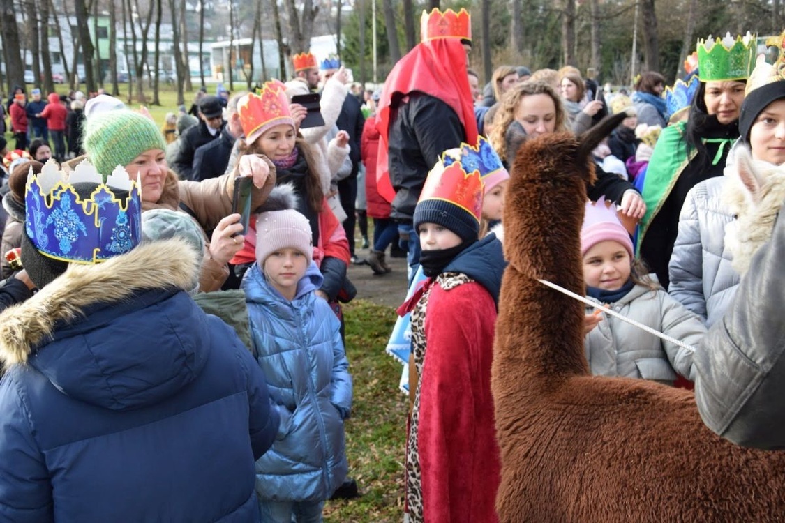 Królowie jechali na koniach, w towarzystwie… alpak, które później z lubością ustawiły się przy Świętej Rodzinie. Alpaki pojawiły się na orszaku po raz pierwszy, wzbudzając spore zainteresowanie. Jak powiedział pod koniec wydarzenia ks. Wojciech Sroka, proboszcz dobrzańskiej parafii, „te nasze wielbłądy są jeszcze małe, ale do przyszłego roku urosną”. W pochodzie podążała spora grupa parafian również w królewskich strojach – wszak po raz kolejny zorganizowany został konkurs na najpiękniejszy strój.