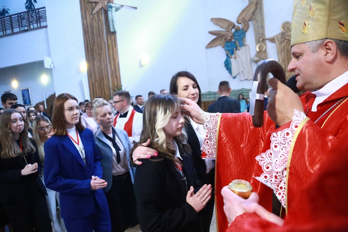 W kościele w Łękach Górnych 9 maja bp Leszek Leszkiewicz wybierzmował 5 kandydatów ze Zwiernika, 12 z parafii Machowa, 13 z parafii Słotowa, 15 z parafii Żdżary i 34 z parafii Łęki Górne.