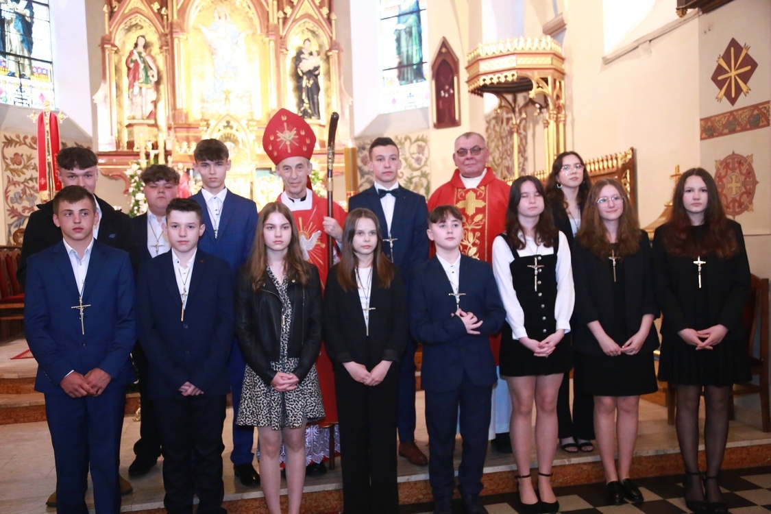W kościele parafialnym w Przecławiu bp Stanisław Salaterski wybierzmował 17 maja 13 kandydatów z parafii Łączki Brzeskie, 7 z parafii Kiełków i 73 z parafii Przecław.