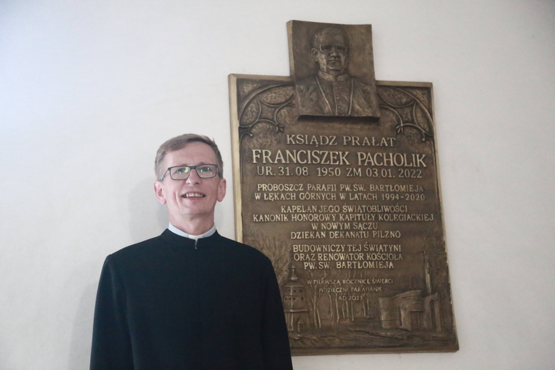 W Łękach Górnych bp Stanisław Salaterski pobłogosławił tablicę pamiątkową ks. Franciszka Pacholika, zmarłego w styczniu 2022 roku księdza, który przez 26 lat był proboszczem miejscowej parafii.
