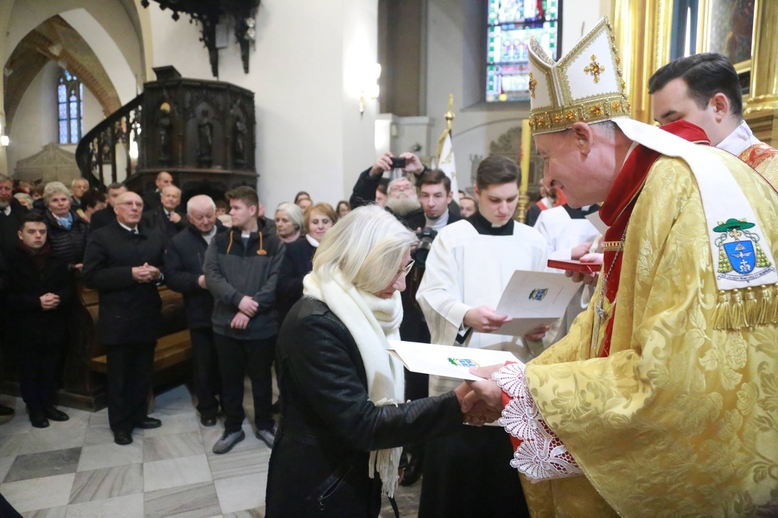 44 osobom oraz parom małżeńskim biskup tarnowski Andrzej Jeż wręczył 26 listopada w katedrze diecezjalne medale "Służyć Królestwu Bożemu".