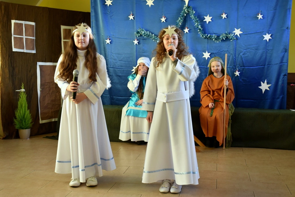 Deesemki z miejscowej parafii poradziły sobie z trudną materią, rolami męskimi, i z opiekunką przygotowały jasełka.