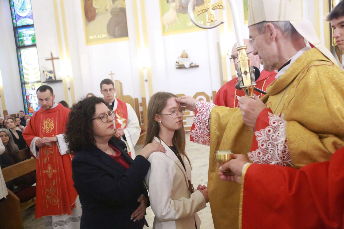 Biskup Stanisław Salaterski w kościele parafialnym w Łukowicy wybierzmował 11 kwietnia 18 kandydatów z parafii Czarny Potok i 48 z parafii Łukowica.
