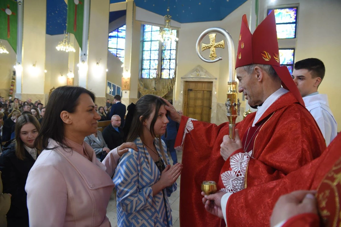 Biskup Stanisław Salaterski bierzmował młodych z parafii św. Heleny w Nowym Sączu. Uroczystość odbyła się w kościele parafialnym 23 kwietnia 2024 roku.