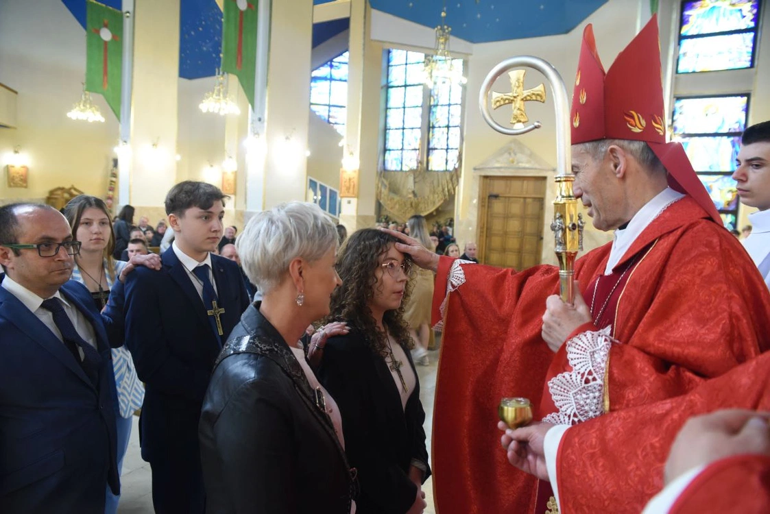 Biskup Stanisław Salaterski bierzmował młodych z parafii św. Heleny w Nowym Sączu. Uroczystość odbyła się w kościele parafialnym 23 kwietnia 2024 roku.