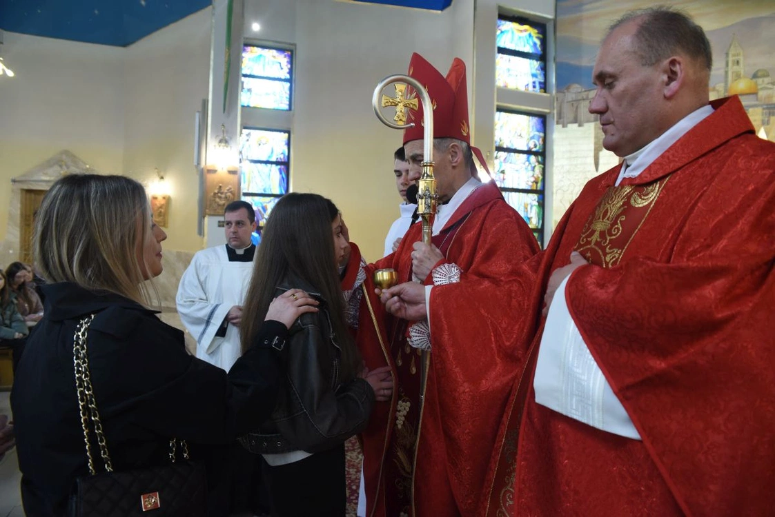 Biskup Stanisław Salaterski bierzmował młodych z parafii św. Heleny w Nowym Sączu. Uroczystość odbyła się w kościele parafialnym 23 kwietnia 2024 roku.