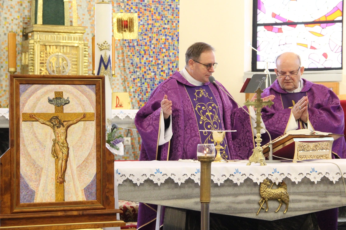 W pierwszą niedzielę Adwentu w kościele parafialnym w Tarnowie-Krzyżu ks. infułat Władysław Kostrzewa pobłogosławił obraz Chrystusa Ukrzyżowanego, który w związku z jubileuszem 100-lecia parafii rozpoczął peregrynację po domach parafian. To wizerunek krzyża znajdującego się w prezbiterium kościoła.