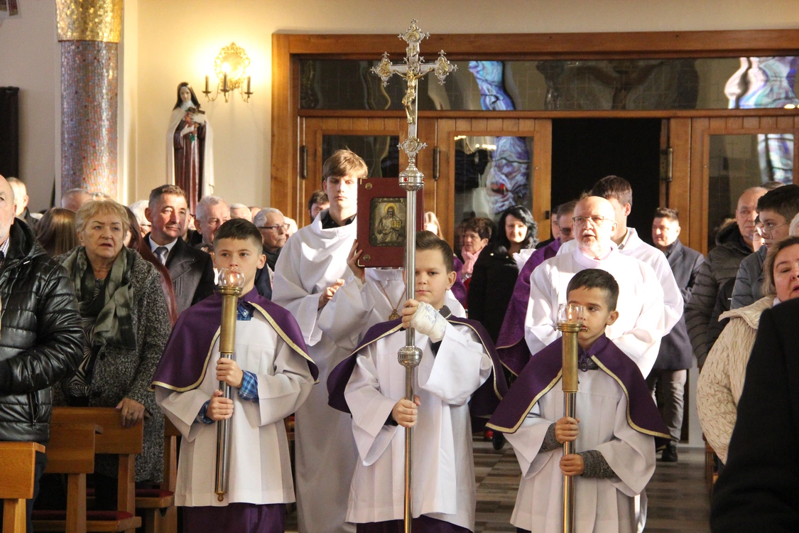 W pierwszą niedzielę Adwentu w kościele parafialnym w Tarnowie-Krzyżu ks. infułat Władysław Kostrzewa pobłogosławił obraz Chrystusa Ukrzyżowanego, który w związku z jubileuszem 100-lecia parafii rozpoczął peregrynację po domach parafian. To wizerunek krzyża znajdującego się w prezbiterium kościoła.