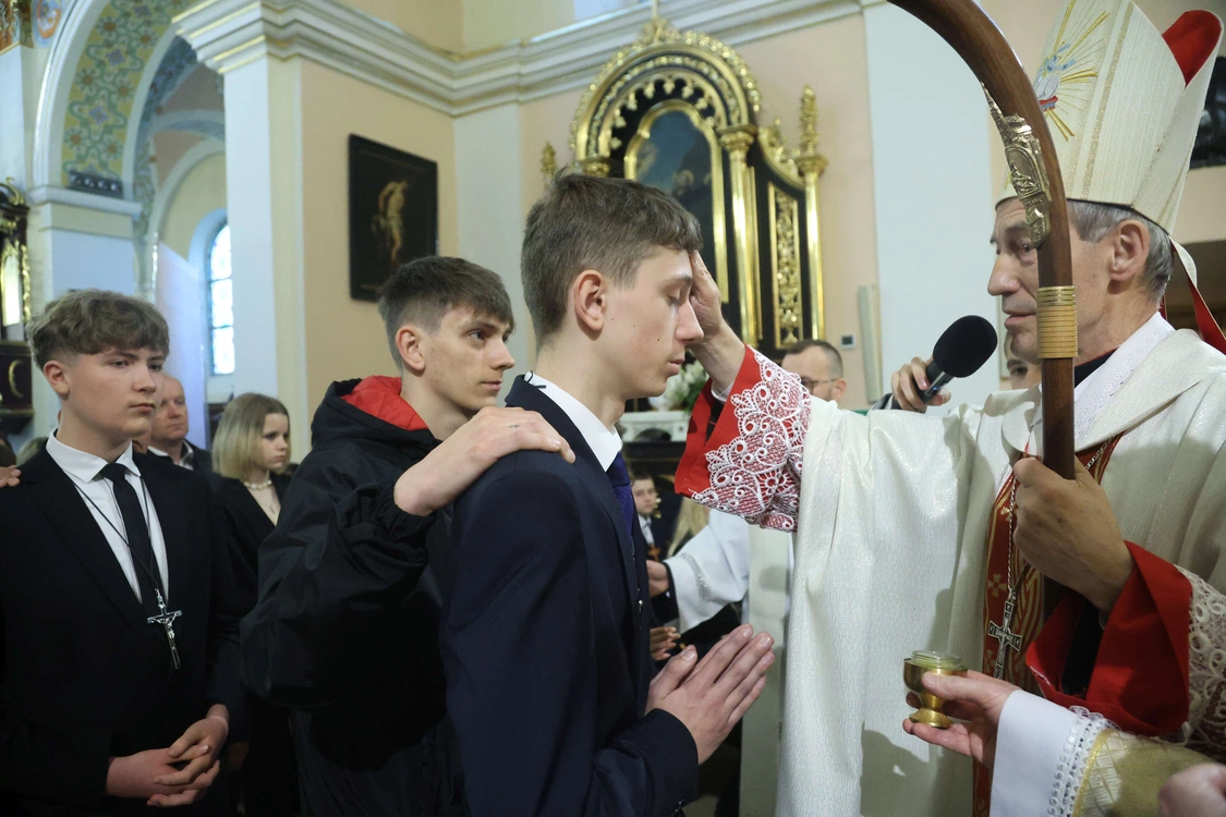 W kościele w Oleśnie 126 młodych ludzi z parafii Smęgorzów, Dąbrówki Breńskie, Odporyszów, Zalipie i Olesno przyjęło sakrament Ducha Świętego.