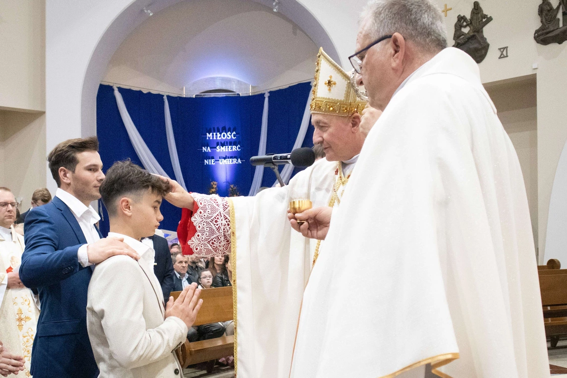 Biskup tarnowski Andrzej Jeż bierzmował 23 kwietnia młodych w świątyni pw. św. Jana Pawła II w Słopnicach Dolnych.