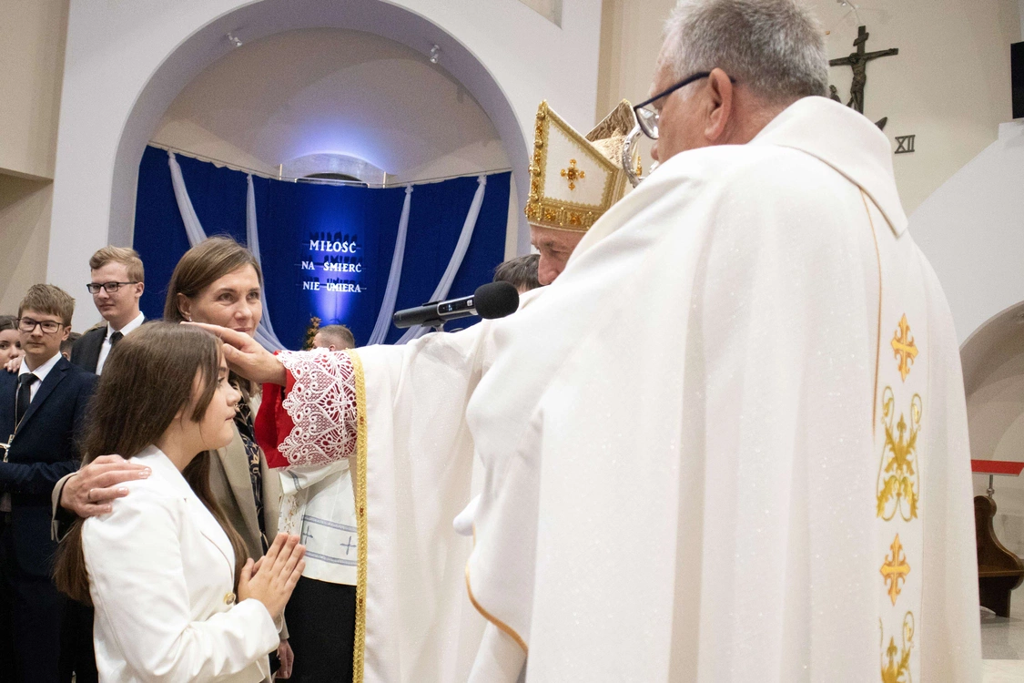 Biskup tarnowski Andrzej Jeż bierzmował 23 kwietnia młodych w świątyni pw. św. Jana Pawła II w Słopnicach Dolnych.