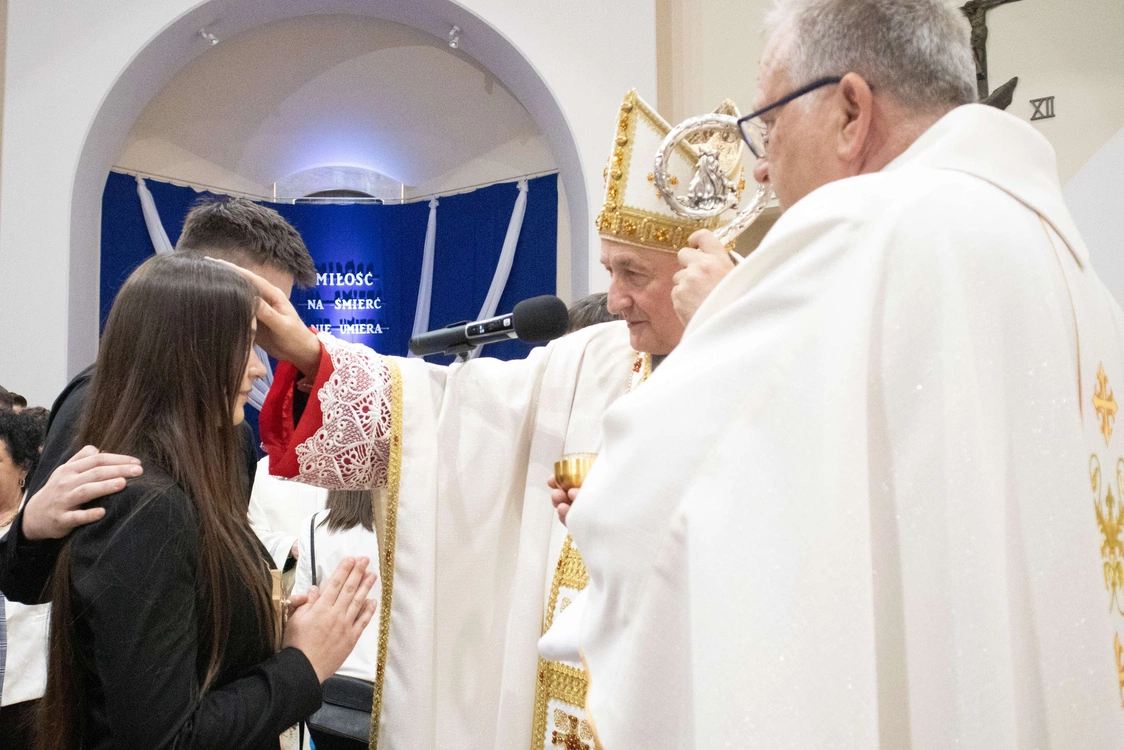 Biskup tarnowski Andrzej Jeż bierzmował 23 kwietnia młodych w świątyni pw. św. Jana Pawła II w Słopnicach Dolnych.