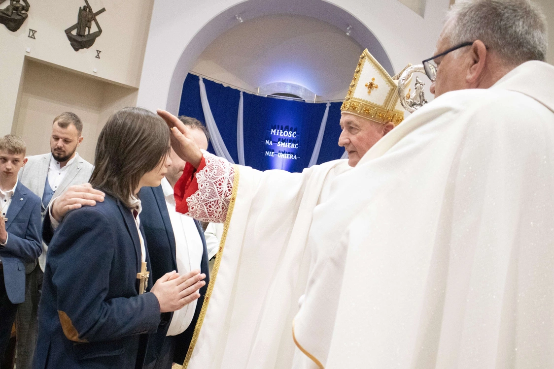 Biskup tarnowski Andrzej Jeż bierzmował 23 kwietnia młodych w świątyni pw. św. Jana Pawła II w Słopnicach Dolnych.