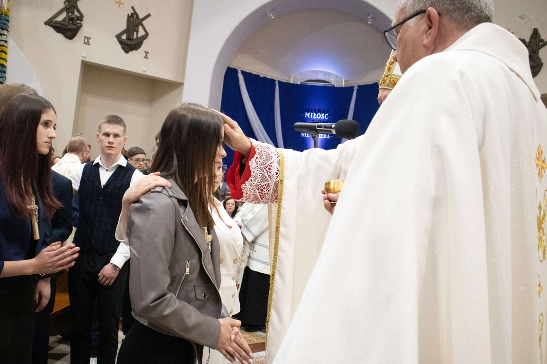 Biskup tarnowski Andrzej Jeż bierzmował 23 kwietnia młodych w świątyni pw. św. Jana Pawła II w Słopnicach Dolnych.