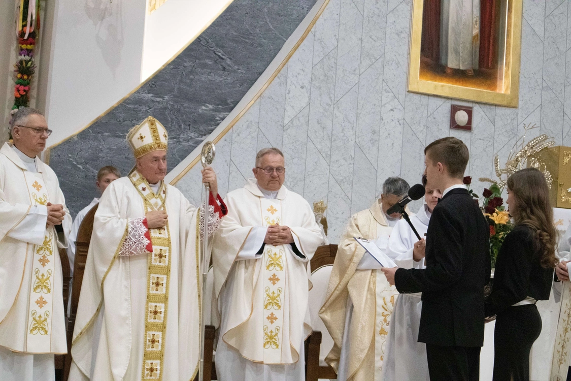 Biskup tarnowski Andrzej Jeż bierzmował 23 kwietnia młodych w świątyni pw. św. Jana Pawła II w Słopnicach Dolnych.