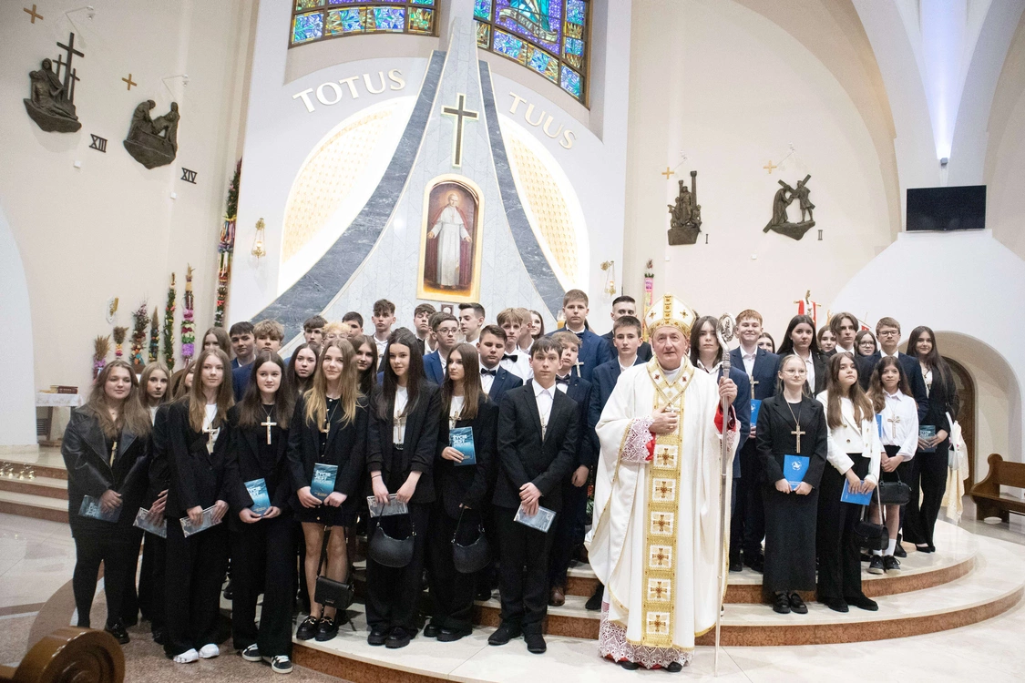 Biskup tarnowski Andrzej Jeż bierzmował 23 kwietnia młodych w świątyni pw. św. Jana Pawła II w Słopnicach Dolnych.