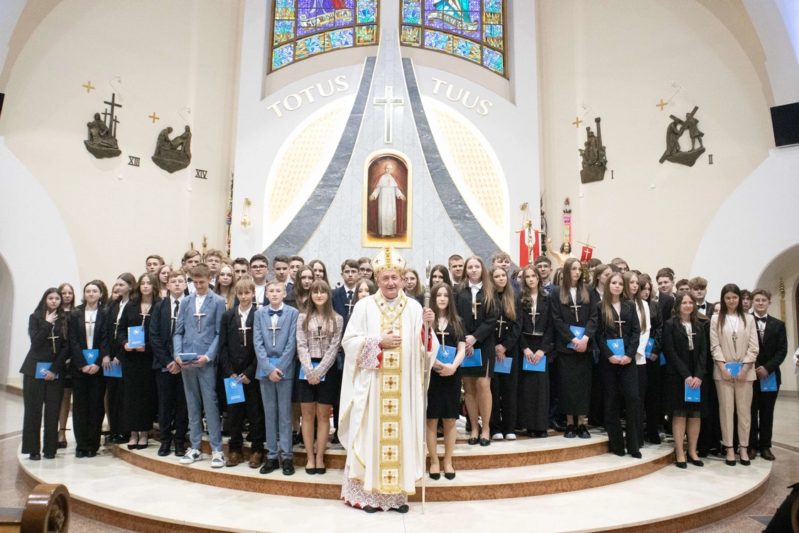 Biskup tarnowski Andrzej Jeż bierzmował 23 kwietnia młodych w świątyni pw. św. Jana Pawła II w Słopnicach Dolnych.