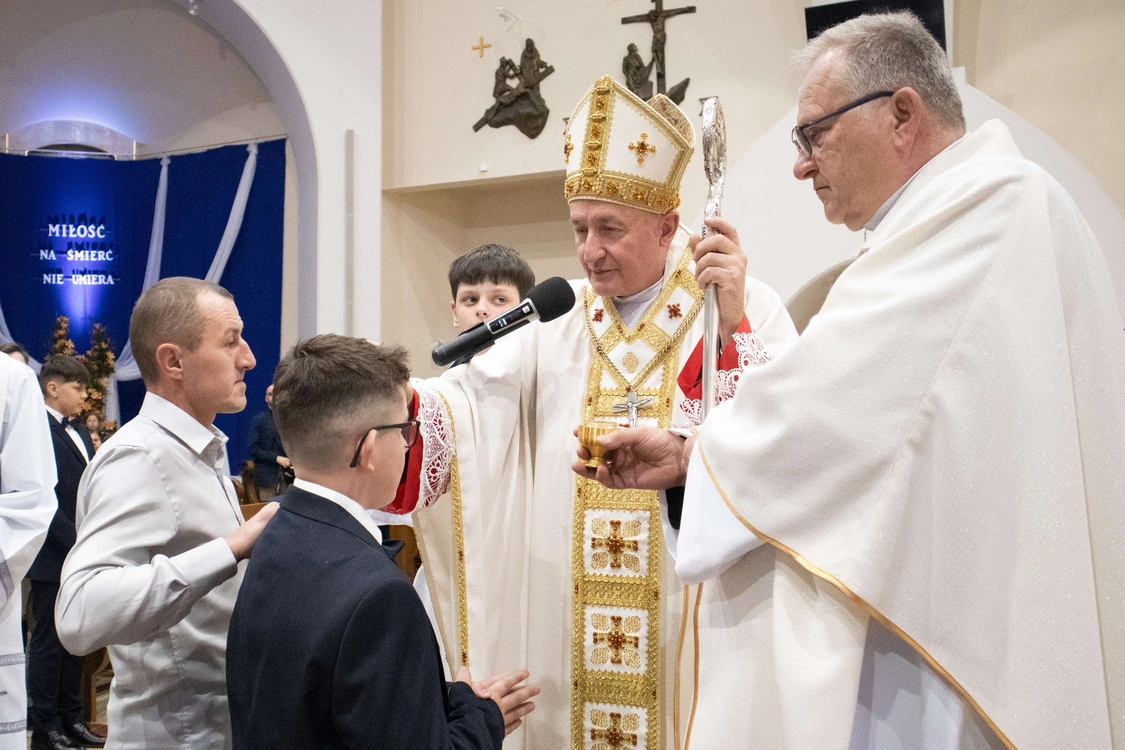 Biskup tarnowski Andrzej Jeż bierzmował 23 kwietnia młodych w świątyni pw. św. Jana Pawła II w Słopnicach Dolnych.