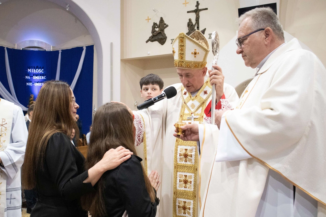 Biskup tarnowski Andrzej Jeż bierzmował 23 kwietnia młodych w świątyni pw. św. Jana Pawła II w Słopnicach Dolnych.