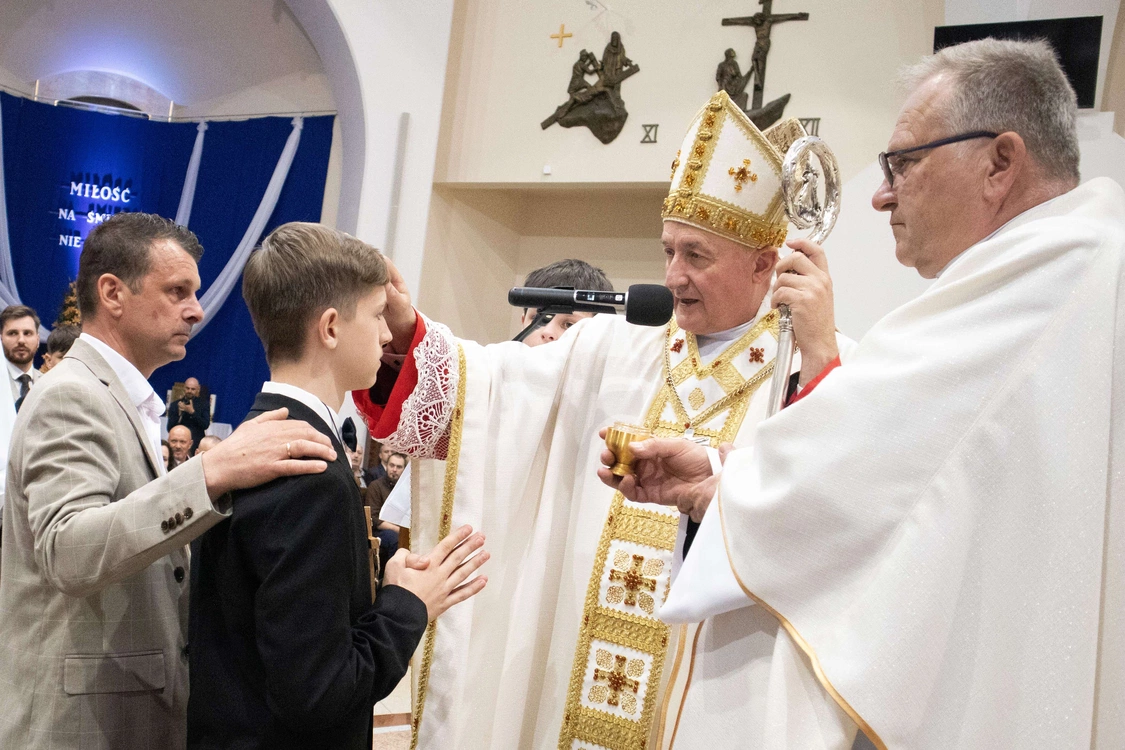 Biskup tarnowski Andrzej Jeż bierzmował 23 kwietnia młodych w świątyni pw. św. Jana Pawła II w Słopnicach Dolnych.