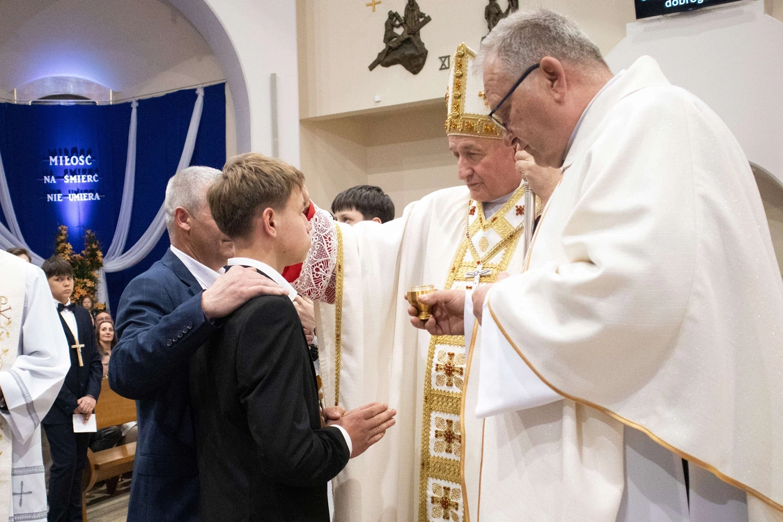 Biskup tarnowski Andrzej Jeż bierzmował 23 kwietnia młodych w świątyni pw. św. Jana Pawła II w Słopnicach Dolnych.