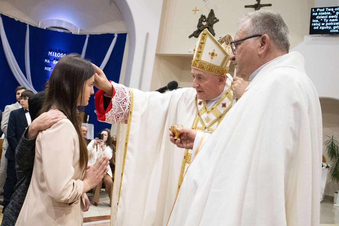 Biskup tarnowski Andrzej Jeż bierzmował 23 kwietnia młodych w świątyni pw. św. Jana Pawła II w Słopnicach Dolnych.